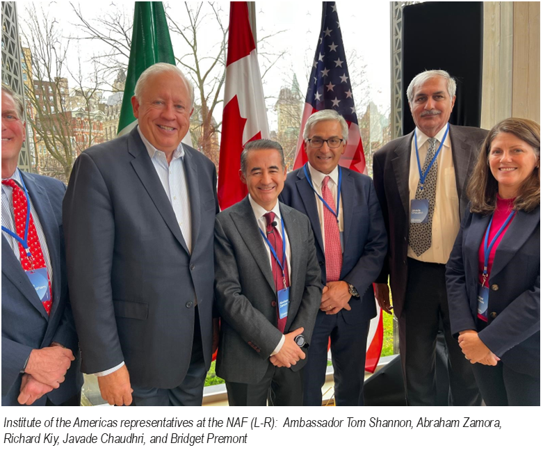| Last month, the North American Forum (NAF) was held in Ottawa bringing together thought leaders from the United States, Mexico, and Canada to explore North American economic integration and the USMCA. Over the course of two days, Forum participants reaffirmed the critical importance of trilateral cooperation and collaboration to address our shared challenges and to advance our shared values. The NAF meeting came at a crucial time given that trilateral discussions related to the renewal of the United States-Canada-Mexico Agreement (USMCA) are expected to begin next year. |